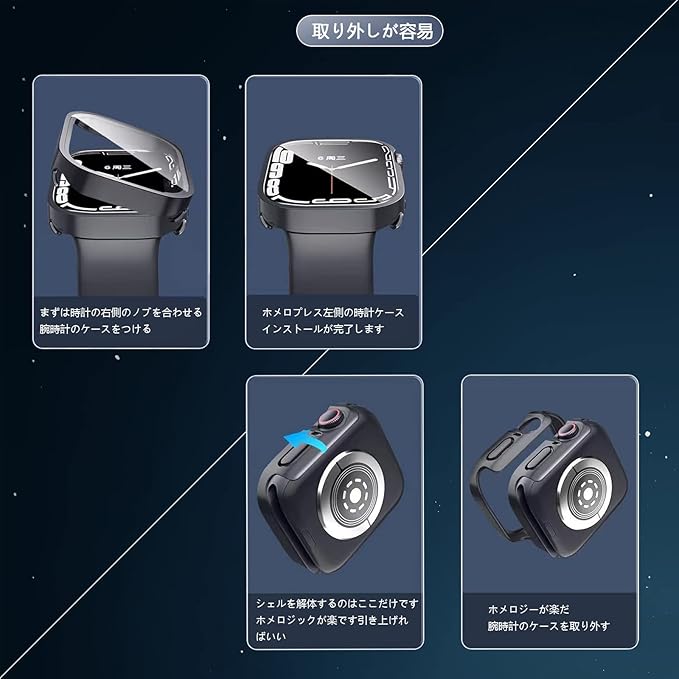 ✅【装着簡単】:簡単に取り付け・取り外すアップルウォッチケースです。アップルウォッチのボタンの丸部分の精密穴を通してからウォッチの本体に取り付けます。または逆の手順でケースを取り外れます。このappleウォッチ カバーを装着してもタッチ操作や充電などを邪魔になく操作できます。