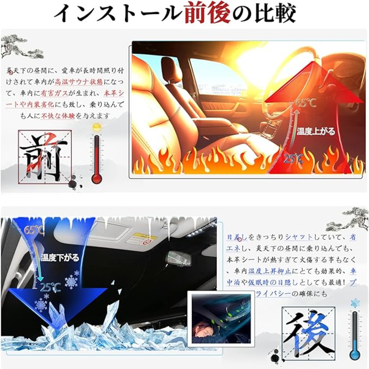 【ruiyaサンシェードの特徴】車種専用設計、超耐久4層構造、メーカー保証、紫外線対策、UVカット、車内熱度軽減、車中泊、吸盤不要・使用感アップ、車内エアコンの効率良くなり、省エネ、プライベート空間、プレゼント出来、コスパ最高、ドラレコも駐車監視でき、ミラーが干渉しなく、内装劣化防止、熱中症発症防止、有毒気体生成防止、収納便利、取り付け簡単、無毒無味、サイズピッタリ、高品質素材、収納袋付き、真夏の太陽の照り付けから愛車を守る。友達または親にもプレゼントすることにおススメです。