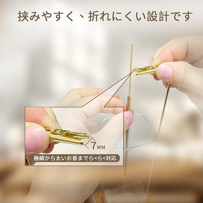 ✓【多様な直径のお香に対応】精巧なテーパー型クリップは、線香・竹芯香・長香など、さまざまな太さのお香をしっかり固定可能。香棒は中央部で挟むことで、安定した燃焼が得られます。