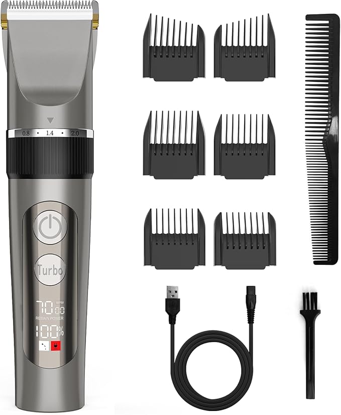 バリカン メンズ【2025革新モデル IPX7防水】3段階スピード 0.8-2.0mm刈り高さ調節 ヘアーカッター 自動研磨 USB充電式 LEDディスプレイ 水洗い可 低騒音 ツーブロック 坊主 子供 家庭 業務用 セルフカット 散髪用 電動バリカン グレー