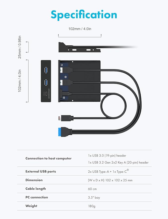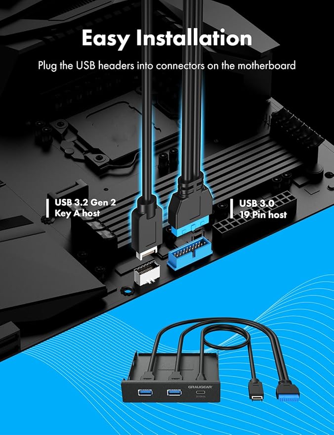 GRAUGEAR 3.5''インチベイ対応 PCマルチフロントパネルに搭載 3ポートハブ 20Gbps USB 3.2 Gen2x2 Type-C USB-Cポート、USB 3.0コンピューター用 3.5インチコンピューターシャーシのフロントブラケットに適合 [G-MP01] | KAZESHOP