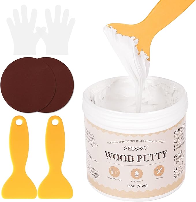 SEISSO 木用パテ 補修 穴うめパテ 補修パテ 500g ネジ穴 補修 木工補修用パテ 木工パテ 木製品の穴 亀裂 汚れなど補修 スクレーパー付き サンドペーパー付き 手袋付き (ホワイト)
