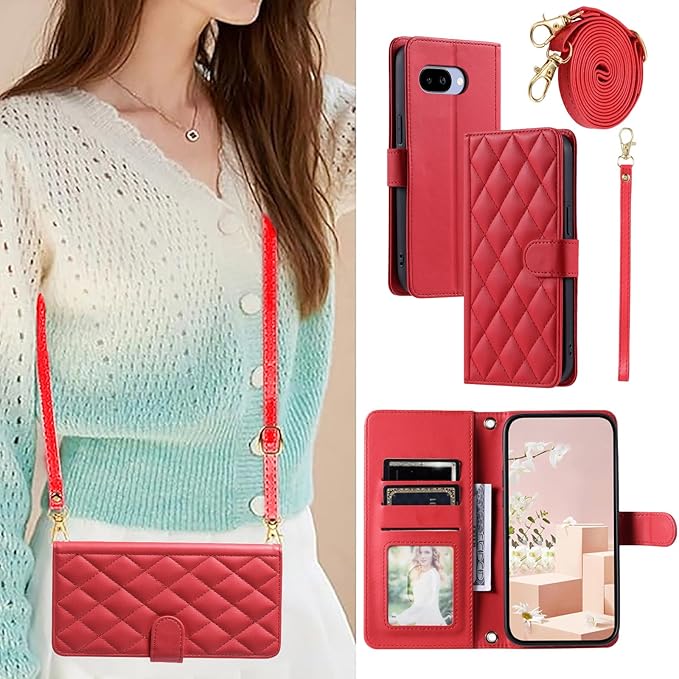 Google Pixel 9A ケース 手帳型 ピクセル9Aケース 手帳型 Pixel9Aケース 財布型 ショルダー ストラップ カード収納 スマホケース グーグルピクセル9A 携帯カバー Googleピクセル9A ぐーくるぴくせる9A カバー 肩掛け 斜め掛け スタンド機能 グーグルピクセル9Aケース ピクセル 9A カード ピクシル9A手帳型 全面保護 耐衝撃 おしゃれ - 赤