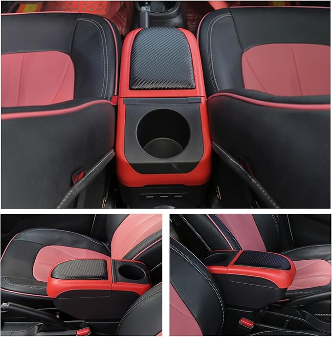 ruiya 改良型 スズキ ジムニー JB23 / ジムニーシエラ JB43 専用 アームレスト 車用アームレスト コンソール 前後スライド調節可能肘掛 アームレストボックス ドリンクホルダー増設 運転疲労軽減 USBポート付き 充電便利 車内収納ボックス 多機能 装着簡単 小物入れ 肘掛け 肘置き 収納アクセサリー カー用品 落下防止 カスタムパーツ(レッド 円形ホルダー)