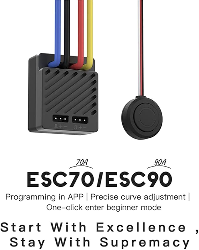 .説明: 商品ブランド:ISDT。 モデル:ESC90。 連続/ピーク電流:90/180A モータータイプ:540/550/775 つや消しモーター。 用途:1/8 1/10。 サポートバッテリー:リポ(2-3S)/ニッケル水素(6-8S)。 BEC出力:3Aアンペア定格、5V-7.5Vスイッチ(ステッピング0.1V)。 ワイヤ/コネクタ:16AWG-200mm(プラグなし)。 LEDステータスの説明 電源オン:1回白色のLED点滅を短く押します。 スタンバイ:グリーンLED点灯 エラー:赤色のLED点滅。 Bluetooth接続: 使用前に5秒間長押しし、青色のLED点滅を設定します。 Bluetooth接続:ブルーLED点灯。 電源オフ:1回長押し。 重量:約49g/スイッチ約4.5g。 パッケージ: 90A ESC x 1(最新のファームウェアを更新してください) 。