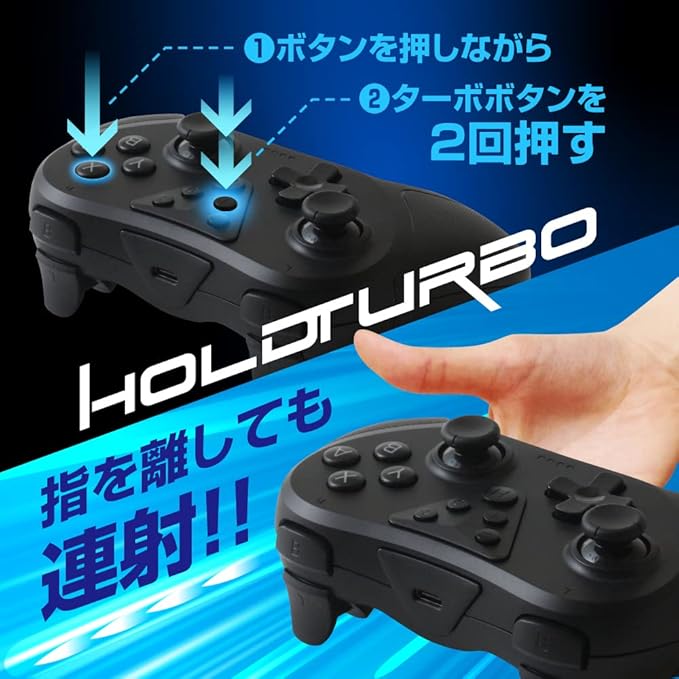 連射状態を固定できる連射ホールド機能を搭載しており、ゲームのコマンド入力など使用できます。