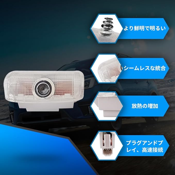 【材料】LEDランプビーズ光源、難燃性材料で作られたウェルカムランプフレーム。電子干渉がなく、高品質な生産条件で作られ、取り付けが簡単で、車を傷つけることはありません。