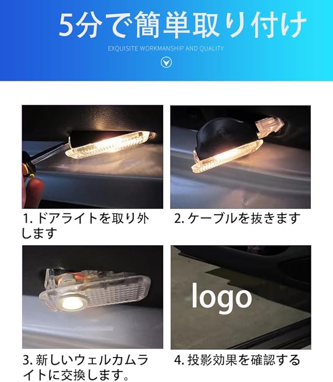 『取り付け簡単』:純正カーテシランプと差し替えるだけの簡単装着!愛車を傷つけず手軽にドレスアップが楽しめます,簡単なインストール:掘削なし、ケーブルなし、解体せず、車を傷つけることなく。