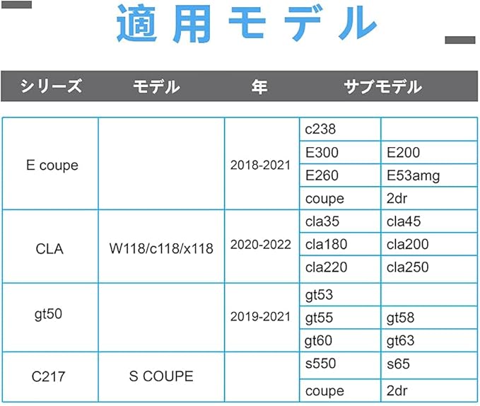『適合車種』:CLA(2020-2021),AMG GT ,E-Coupe(2018-2021)