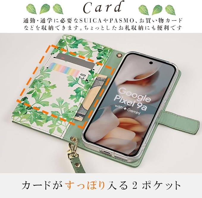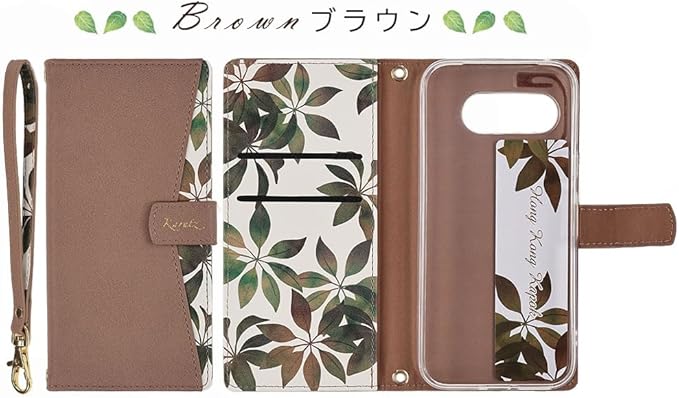Pixel 9a ケース 手帳型 グーグル ピクセル9a Google Pixel9a カバー リーフ 葉っぱ柄 スマホケース かわいい おしゃれ 可愛い お洒落 薄型 保護 耐衝撃 手帳 au softbank docomo ブラウン B153P9ABR | KAZESHOP
