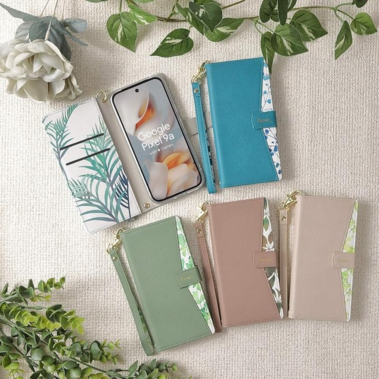 植物の葉っぱデザインがおしゃれな手帳型ケース