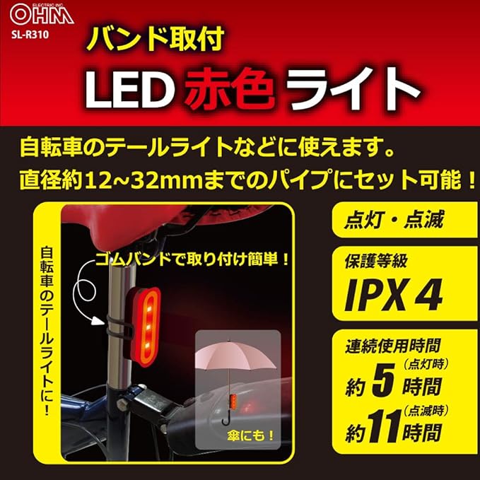 ゴムバンドで取り付け簡単、傘にも取付できます。