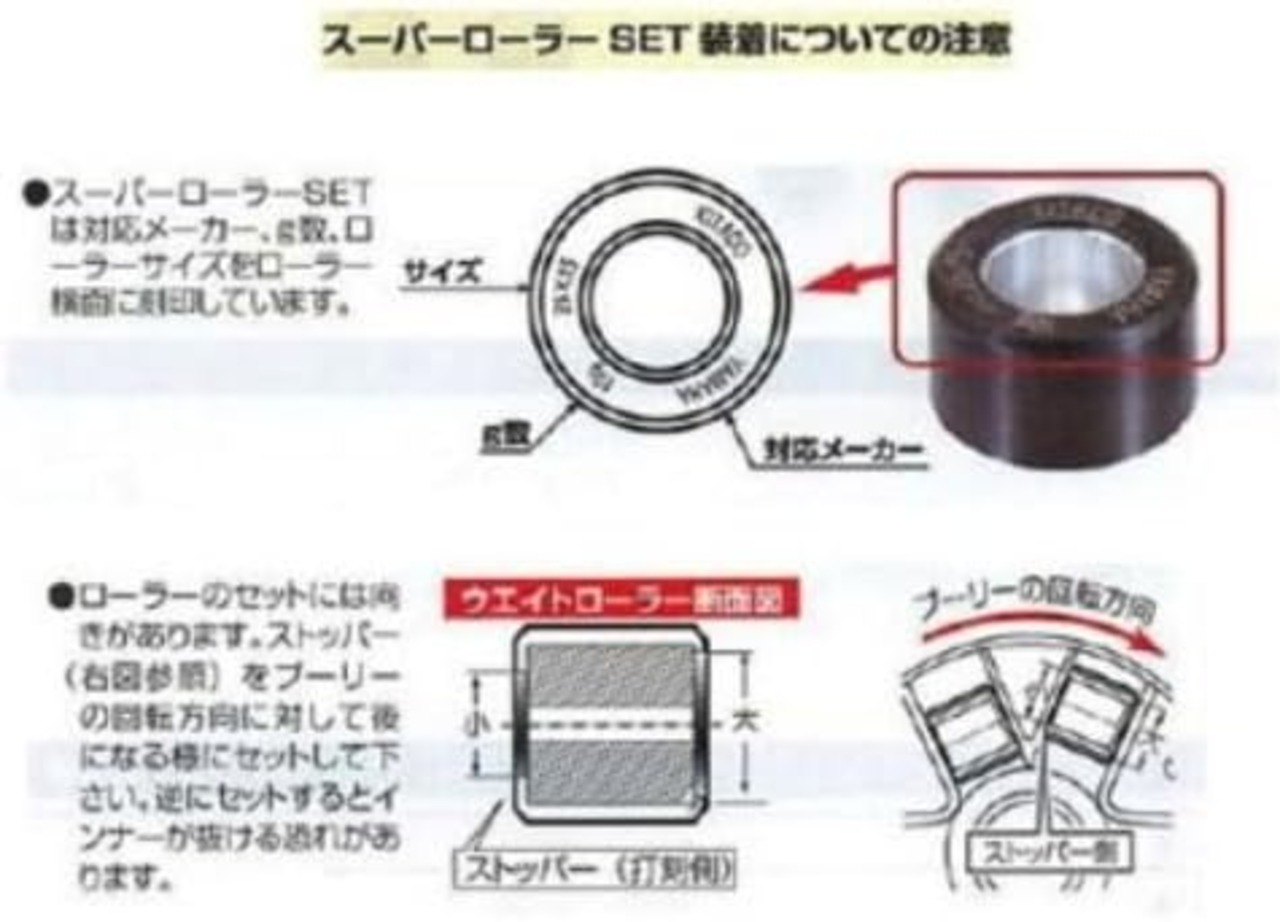 ※ウエイトローラーは消耗品です。3000km毎に点検し、片減り、破損等がある場合は交換してください。