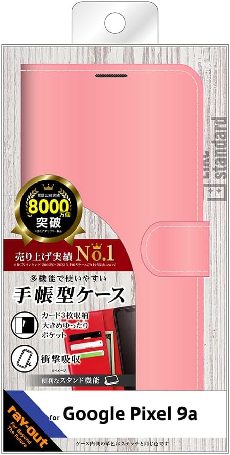 カードが入れられる大容量な収納ポケット。軽量で薄く持ち運びしやすい。動画視聴などに便利なスタンド機能付き。便利な機能を豊富にそなえた手帳型ケースの決定版。ストラップホール付き。 ● [●]●
