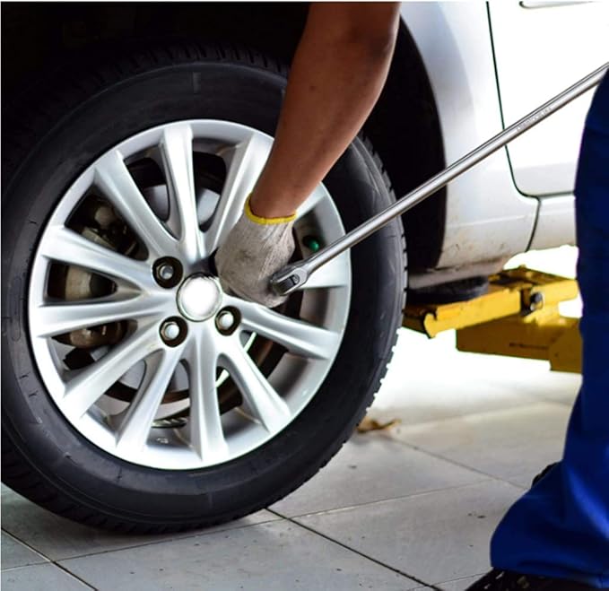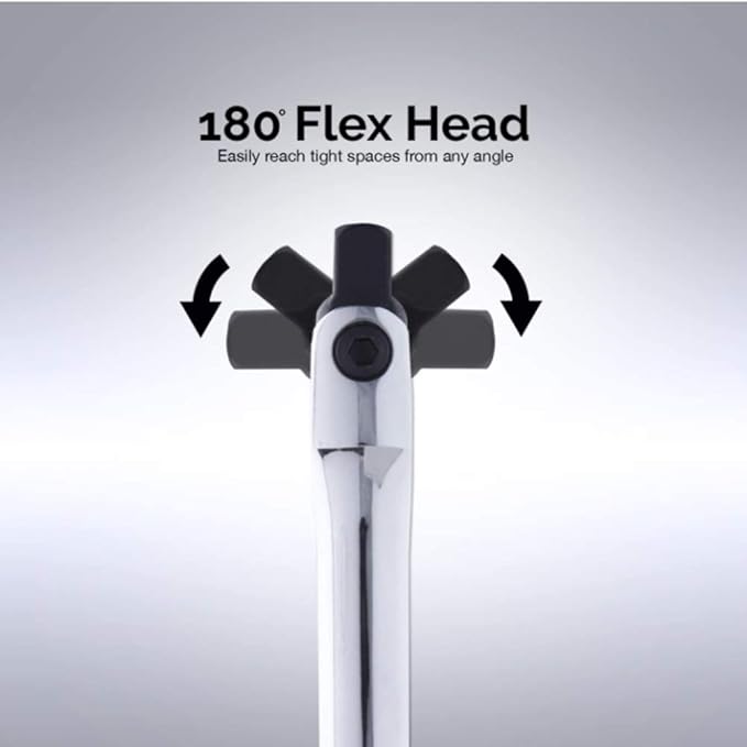 ロングスピンナーハンドル ホイールレンチ 差込角 12.7mm 1/2インチ 460mm 180 可動 CR-V鋼製 メッキ仕上げ タイヤ交換 プーリーボルト脱着 工具 (460mm) | KAZESHOP