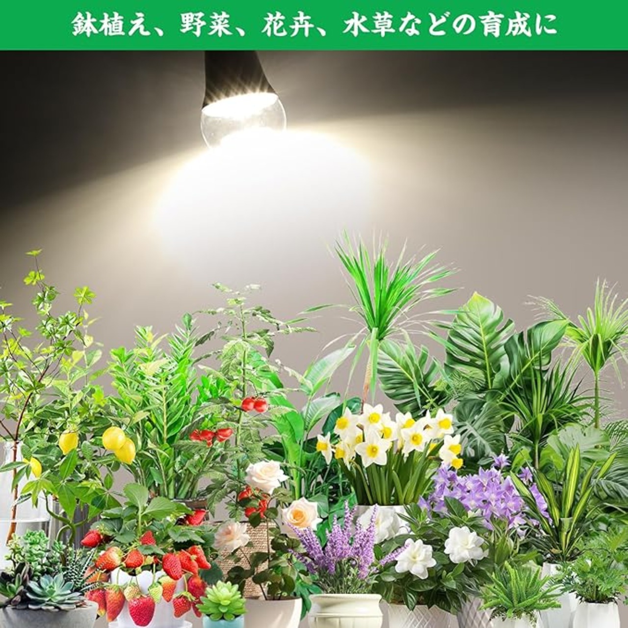 【安全で幅広く使用されています】E26バランスのとれたフルスペクトル植物栽培電球は、植物に毎秒23マイクロモルの高出力PPFを提供できます。野菜、水生植物、苔玉、多肉植物、観賞用植物、塊茎、水耕栽培植物、トマト、キュウリ、ピーマン、ハーブ、その他の屋内植物のあらゆる成長段階に適した総合的な栽培環境を作りましょう。家庭での鉢植え、ガーデニング、水耕栽培、水槽の照明、屋内栽培、植物工場、温室、屋内庭園、家庭菜園、研究室、学校などに最適です。
