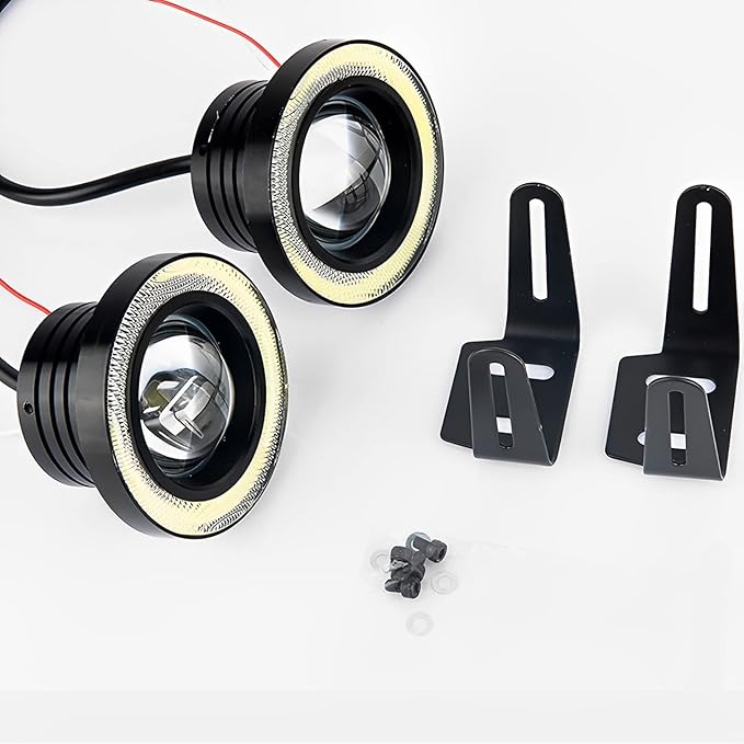 電圧:DC12V/汎用 2.5インチ(約 64 mm)、3インチ(約76㎜)、3.5インチ(約89㎜) パワー:10W(フォグランプ) 動作温度:-40~80℃防水等級:IP65 色温度:約7500~8000k ルーメン:1100LM(フォグランプ) 中心部分(共通):ホワイト本体材質:アルミヒートシンク セット内容:フォグランプ 2個、ステー金具配線:▼赤色→フォグ+12V▼ピンク→イカリング+12V▼黒/白→アース""