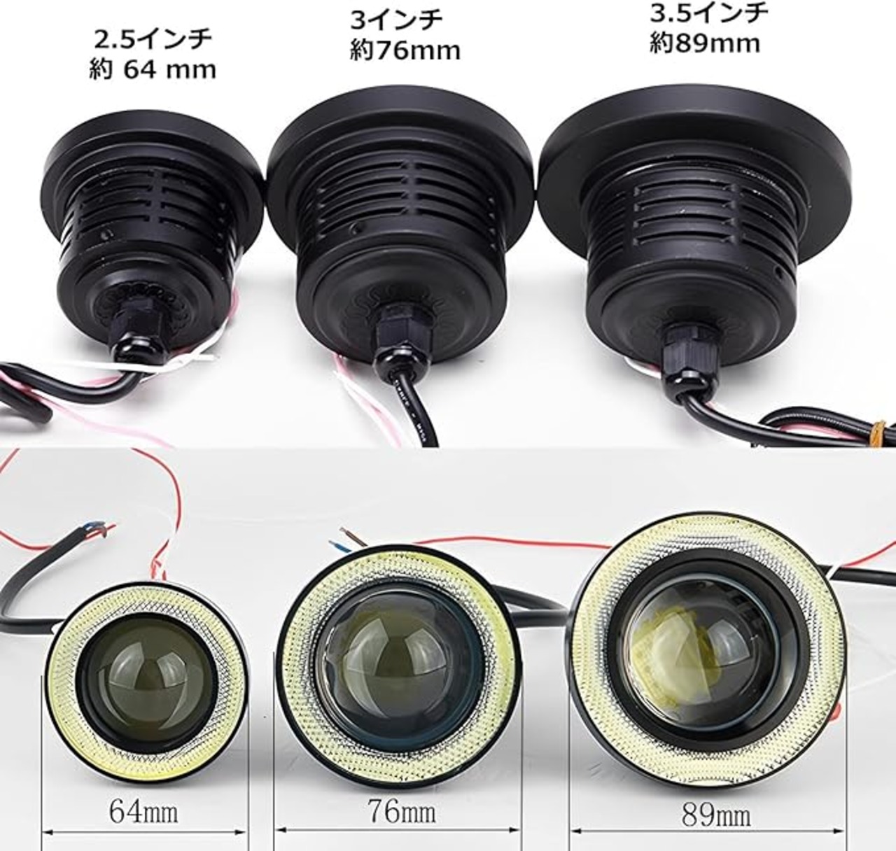 【サイズ】2.5インチ(約 64 mm)、3インチ(約76㎜)、3.5インチ(約89㎜) 【カラー】 発光色:ブルー/ホワイト よりお選びいただけます