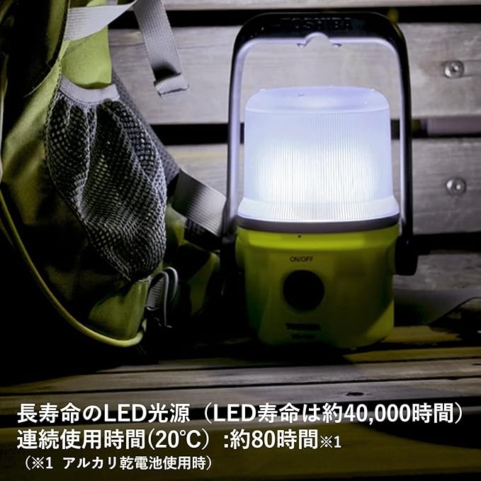 明るさ(点灯初期値):約31ルーメン/約15ルクス(50cm前方)アルカリ乾電池使用時