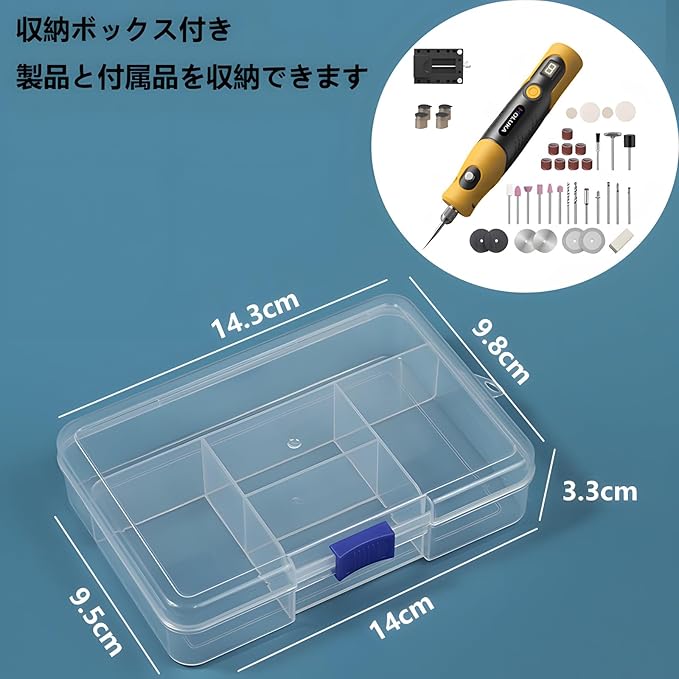 [複数のツールタイプ] 最大256個のプロ仕様のツールヘッドを搭載し、切断、研削、研磨、ワイヤーブラッシング、彫刻、穴あけ、錆取りなど、さまざまな日常の作業シーンに対応するために複数の仕様切り替えをサポートします。同時に、0.5mm~3.2mmのクランプ範囲をサポートし、他社のより多くの拡張ツールに適応できます
