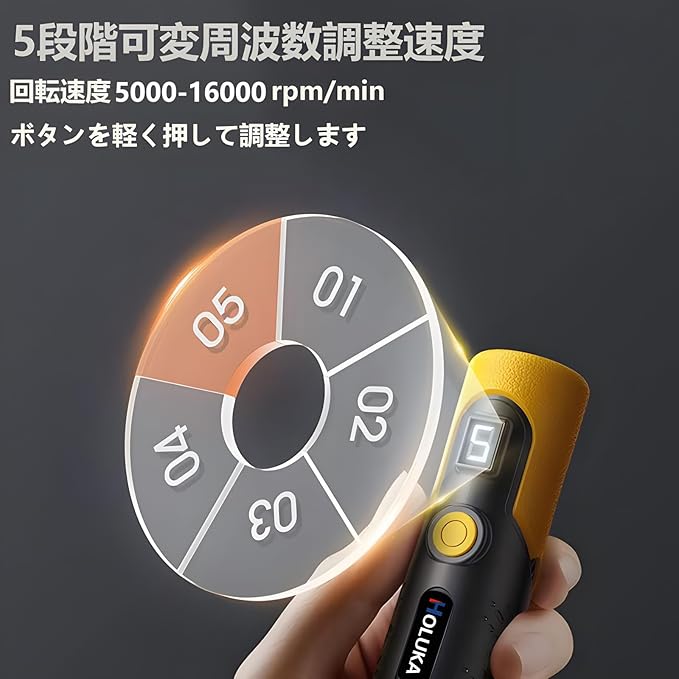 [複数のギア選択、高い同心性] 3200 - 16000 rpm(ギアあたり3200 rpm)の5つのギアをサポートし、ギアディスプレイを備え、電源スイッチを押すだけで簡単にギアを変更できます。操作は簡単で、2024年の最新のダブルベアリング設計を採用し、操作中の同心性が高く、正確な操作が可能です