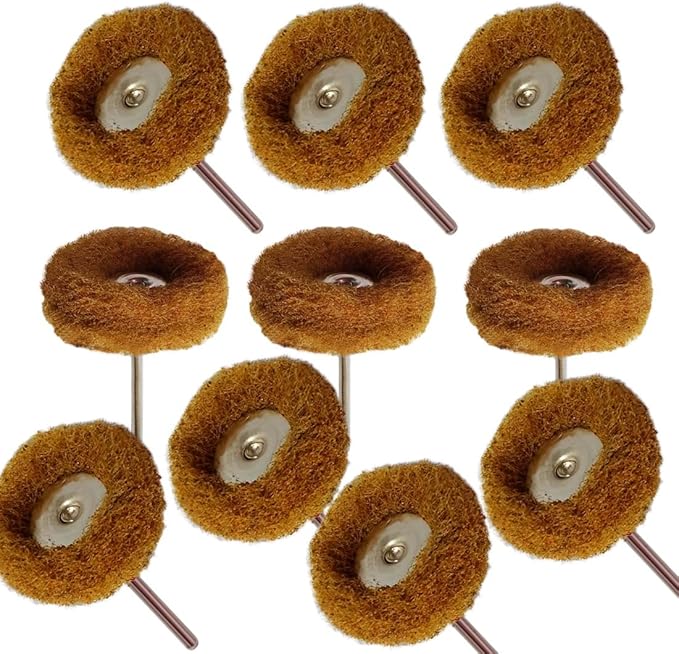 リューター繊維バフ バフ ホイール 3mm軸 10個入りホイール ナイロン 布ブラシ ルーターバフ 研磨 電動 ドリル ルーター ビットミニルーター用先端パーツ 研磨バフ (120#-イエロー) | KAZESHOP