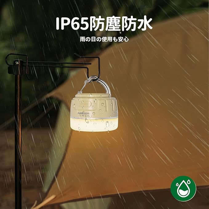 軽量小型でコンパクト:LEDランタンの重量はたったの約189gと軽量なうえ小型で、ポケットやバッグにすっぽり収まります。そのため、キャンプや旅行、防災時など、さまざまなシーンで手軽に携帯することができます。