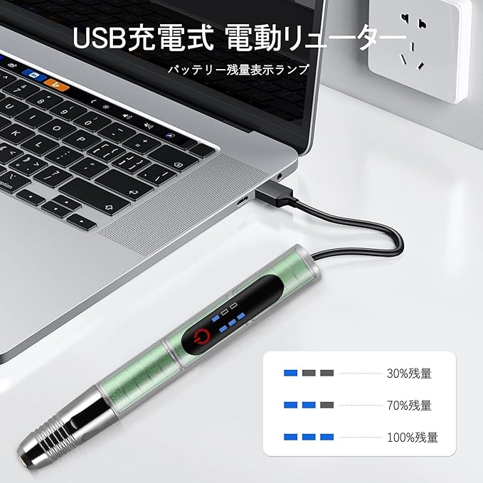 ミニルーター USB充電式 電動リューター 彫刻ペン 電動 コードレス ミニ研削ペン 20000RPM高速回転 3段変速 USB充電式 軽量 44ビット付き 静音作業 彫刻/穴あけ/研磨/切断/切削/つや出し/マニキュア/汚れ落とし 過負荷保護 軽作業 DIY ホビー | KAZESHOP