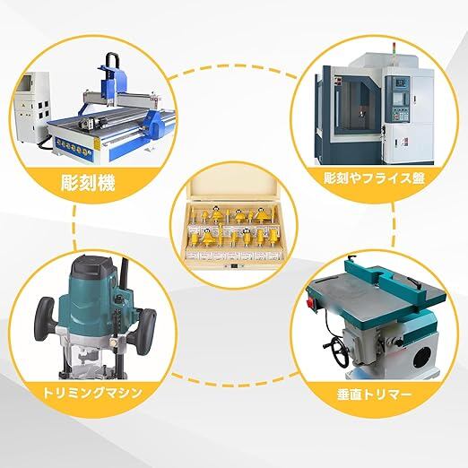 プロ木工トリマービットセット SENJWARM 超硬ルータービットセット 15本組 プロ用木工トリマービット 6mm軸径 ベアリング付き 木彫り/装飾加工に最適 木製収納ケース付き | KAZESHOP