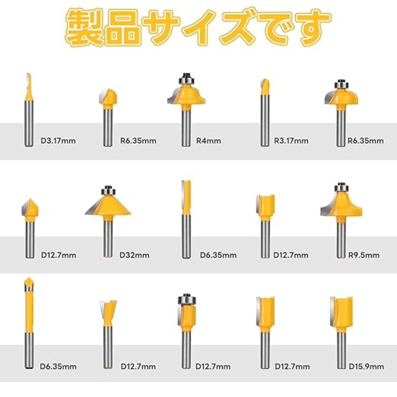 職人厳選の15種類で作業を完全サポート。経験豊富な大工が投票で選んだ、使用頻度の高い15本のビットをセットにしました。溝掘り、面取り、飾り面加工など、多様な木工作業をこれ1セットでカバーします。初心者からプロまで、あらゆるニーズに対応できます