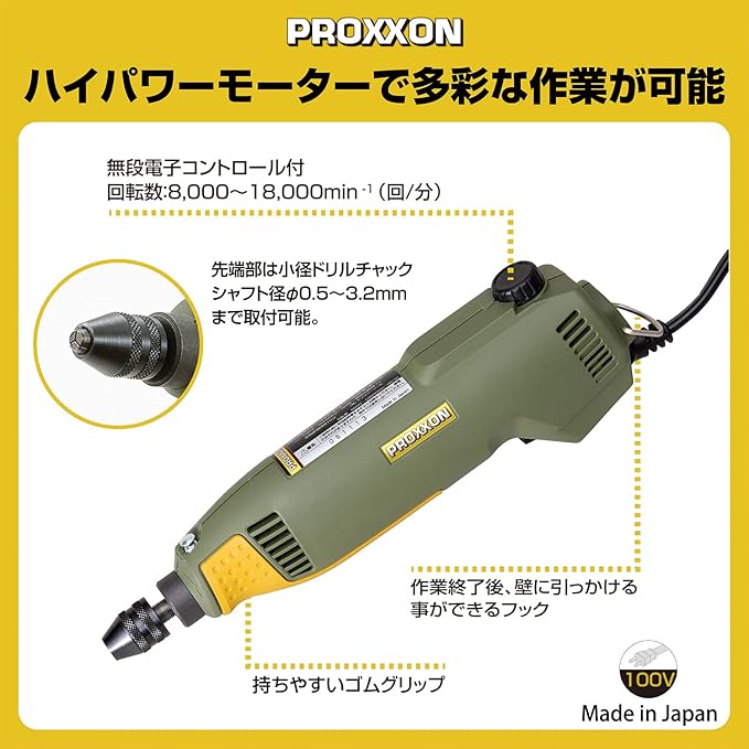 特徴:彫刻、研磨、切削、穴あけ、切断、磨きなど多彩に使える高速ミニグラインダーです。
