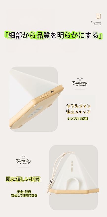 当社のキャンプ用ナイトランプは、正確な 6 段階の調光機能を備えた照明体験を提供します。プッシュボタンコントロールで明るさと色温度を調整し、完璧な雰囲気を設定し、キャンプ体験に贅沢なタッチを加えます。空間全体の雰囲気を向上させることができます。