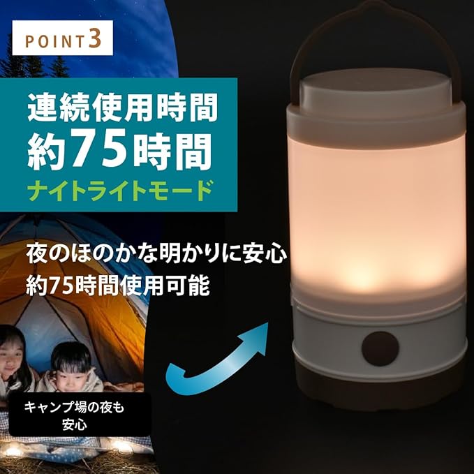 ● 連続使用時間 約75時間(ナイトライトモード)