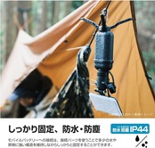 ■雨などによる水濡れでも使える、JIS保護等級IP44相当の防水・防塵タイプのランタンです。※バッテリーに取り付けた状態。
