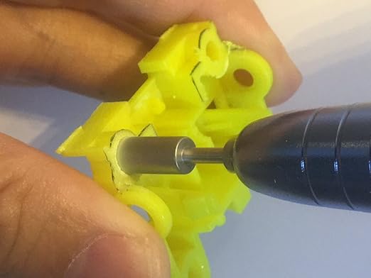 電着ダイヤモンドバー 円柱太径、先端平(シリンダ型)です。5.5φ x 11mm #200 軸径2.35φ1パック2本入りです。ミニ四駆、フレキシブルシャーシのばね(5mm)の受け穴の調整が簡単に行えます。