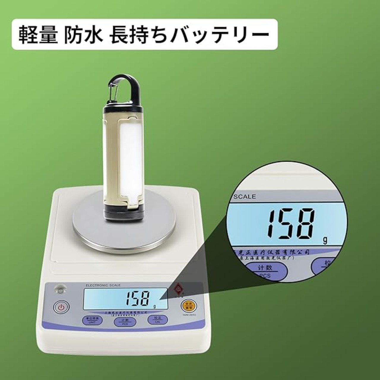 ★【吊り下げ自在・携帯便利なハンギングライト】このledランタン材質ABS,重量わずか158gの超軽量設計。サイズ:4.8*4.8*17cm。上部にハンガーフックを搭載し、テント内・木の枝・車内・タープ下など、さまざまな場所に簡単に吊り下げ可能。コンパクトで持ち運びやすく、アウトドア・防災・車中泊など多用途に活躍する小型ハンギングライトです。