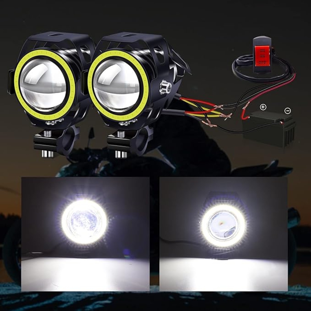 Ygmylandbb オートバイ LEDフォグランプ イカリング バイク用 ヘッドライト ワークライト 補助灯 スポットライト 防水ON/OFFスイッチ、六角スパナ付き 汎用 12-80V IP67防水・防塵・長寿命・低消費電力・二つの発光モード切り替え 白光 アルミ合金製 左右2個セット | KAZESHOP