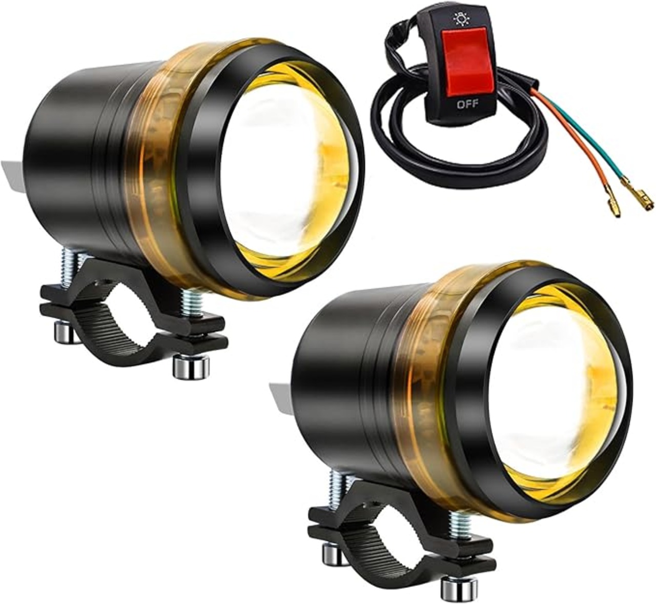 Ygmylandbb オートバイ LEDフォグランプ イカリング バイク用 ヘッドライト ワークライト 補助灯 スポットライト ON/OFFスイッチ付き 汎用 10W 12-80V 爆光・IP67防水・防塵・長寿命・低消費電力・三つの発光モード切り替え イエローリング 左右2個セット | KAZESHOP