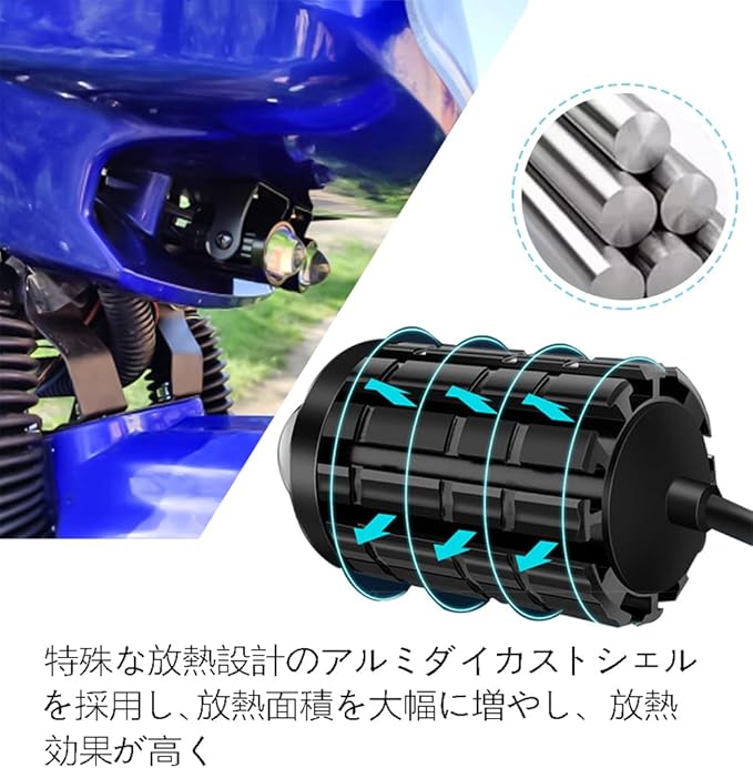 2.透過性に優れたレンズと高輝度LEDチップを採用して、防水性で雨や霧などの悪天候の視認性上昇、朝夕のヘッドライトの補助ランプに。