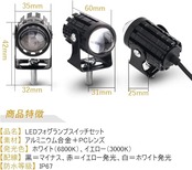 1. フォグランプ2個セット、スイッチ1個セット。ライトは、ホワイト(6800K)、イエロー(3000K)のデュアル仕様。