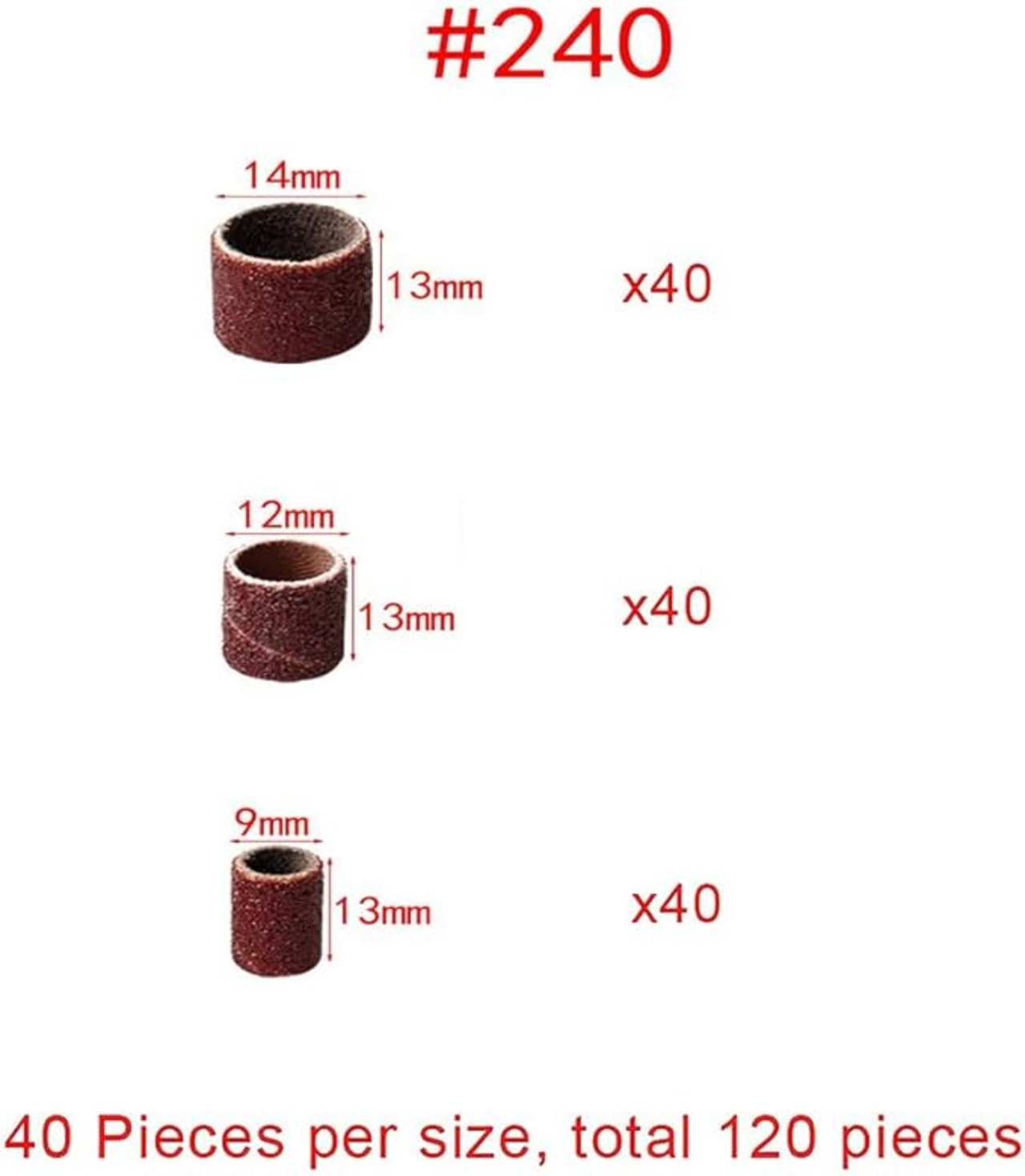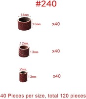 サンディングバンド 126個セット:3サイズ (9mm/12mm/14mm)X 40個 240 グリット + 6本軸(直径約3.18mm) 。