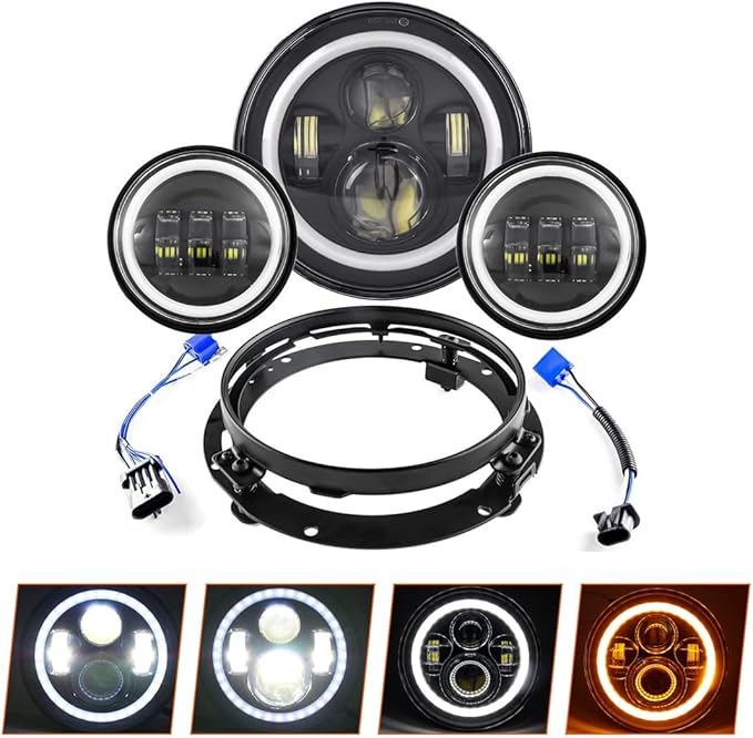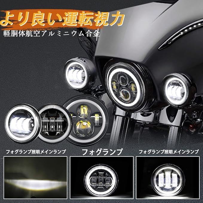 セット内容: H4配線ハーネス*1 H13アダプターハーネス*1 7インチ丸型LEDヘッドライト*1 4.5インチフォグランプ 補助灯*2 取付に必要なハードウェアは含まれておりますので、 別途バラストやワイヤーハーネスは必要ありません。 プラグインタイプで取付けも簡単です。