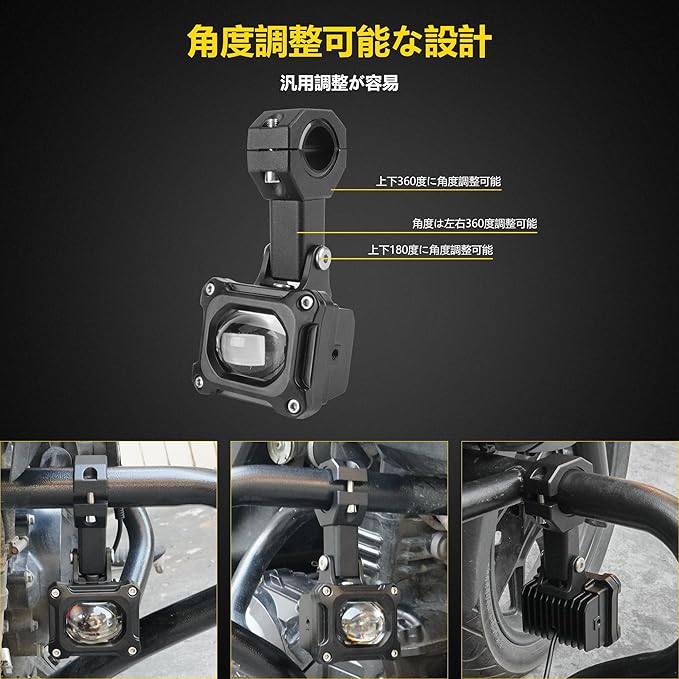 2色配光:このバイク フォグランプは、イエロー発光とホワイト発光ができ、大雨や濃霧の時のバイク フォグランプ LED、バイク サブライト、バイク ヘッドライト 補助ランプなどとして、お好みによって切替られます。
