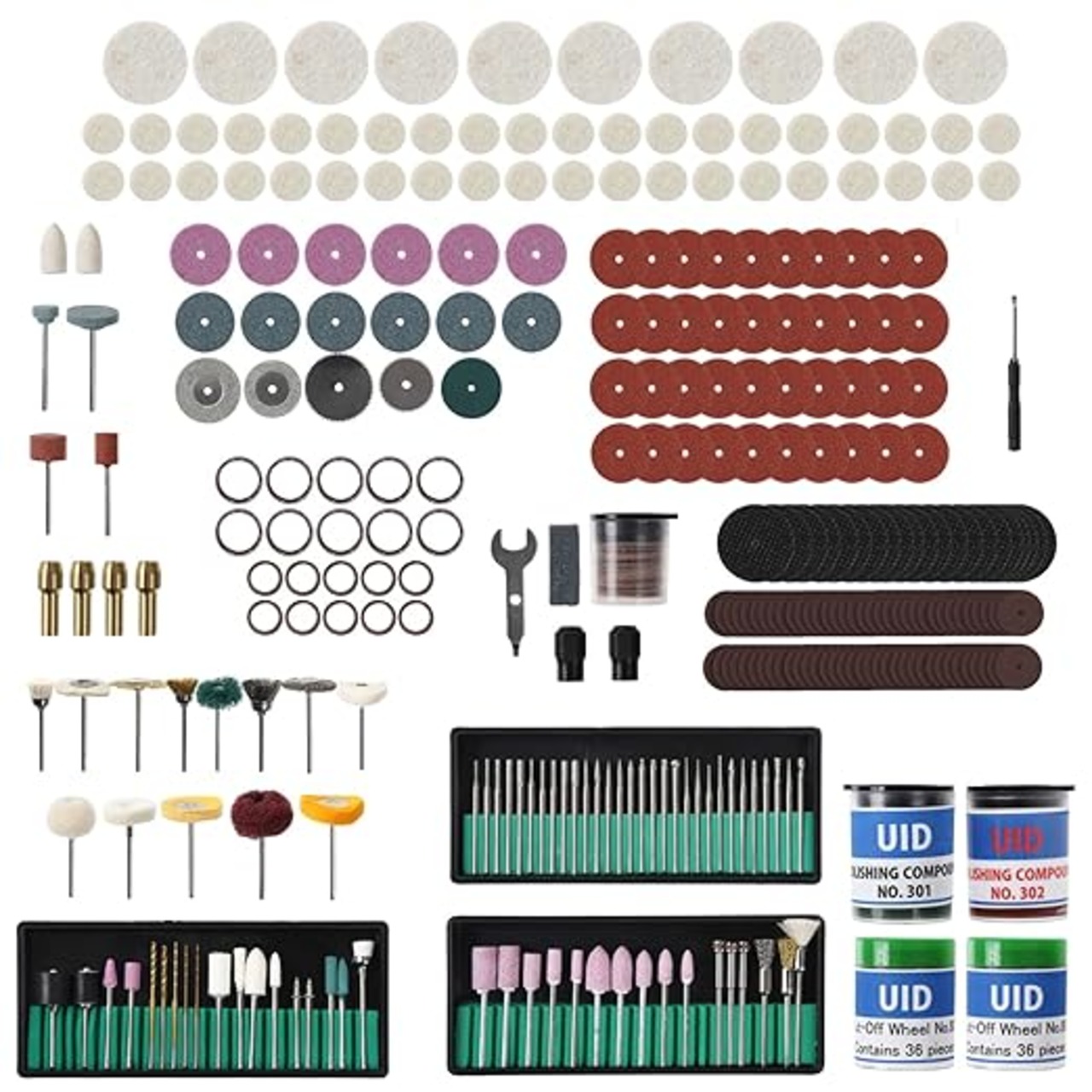 【プロも納得!こだわり派対応】翡翠やガラスの研磨、アルミ板のカットなど、プロの現場でも使えるラインナップを多数収録。羊毛バフやダイヤモンドカッターなど、こだわりの加工に必要なアイテムが一式揃っています。DIYユーザーからプロまで、幅広いニーズに応えるセットです。