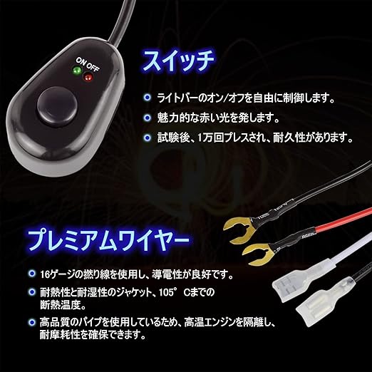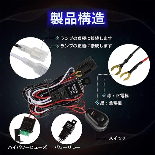 【幅広い用途】弊社のリレーハーネスは密封性に優れた材質を採用し、作業灯、LEDライトバー、HIDおよびハロゲンライトに適合します。LED電圧に合えば、色んな車種に対応可能です。
