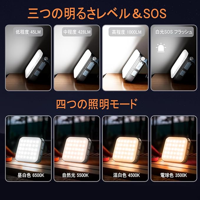 【驚異的な1000ルーメンの明るさ&4000mAh大容量バッテリー】 このLEDランタンは、驚異的な1000ルーメンの明るさと4000mAhの大容量バッテリーを搭載し、最大48時間の連続点灯が可能です。キャンプや災害時にも安心して使用できます。
