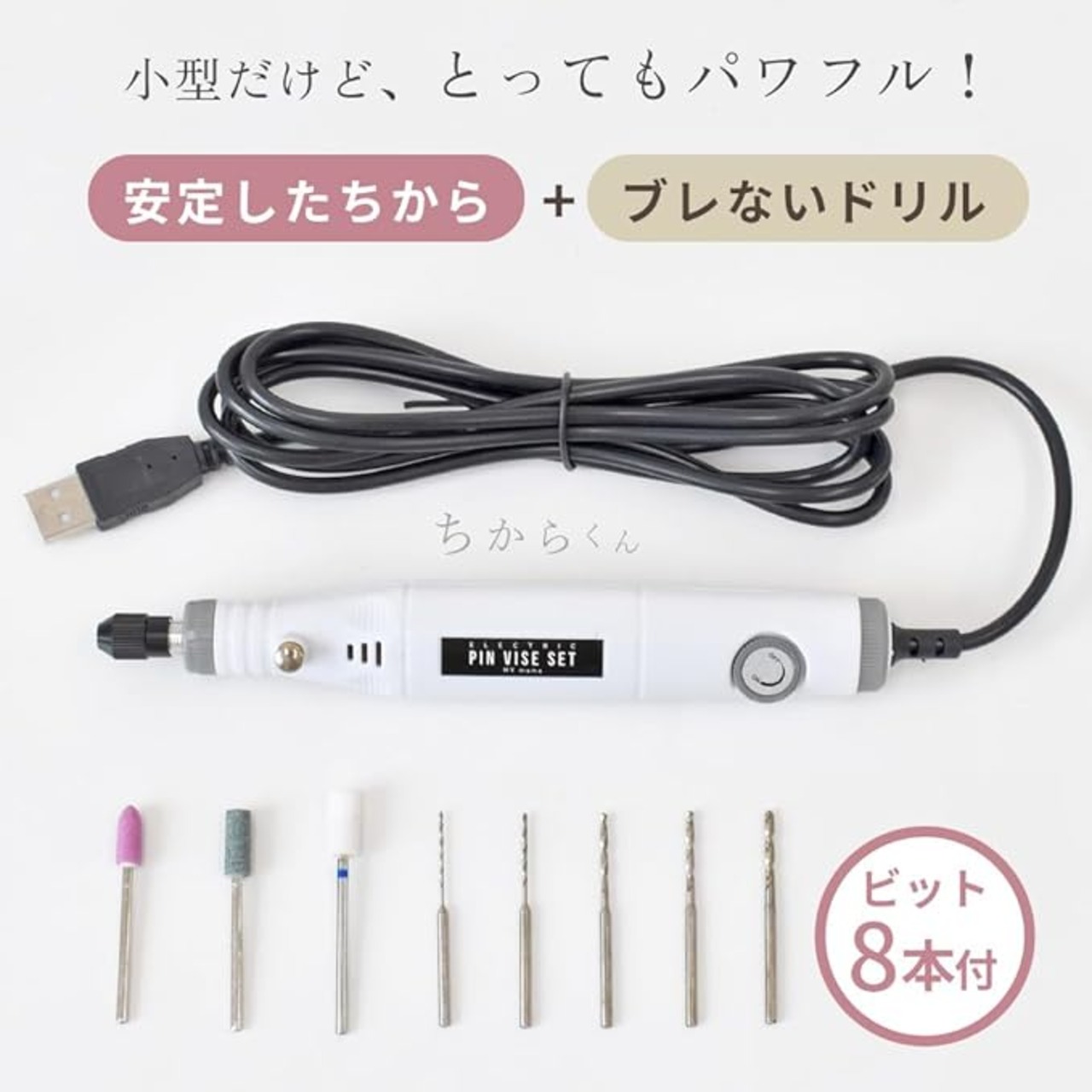 ・ご使用前に部品の損傷などを点検し、正常に作動するか確認する。 ・ドリル接続時にパーツ(ドリル・砥石)が斜めになる場合がございます。閉める際にまっすぐになるようにご調節下さい。 ・連続で使用しない。(本体が発熱した状態で使用しない。) ・太いドリルやセラミック砥石は、本体のモーター部分に負荷がかかるため様子を見ながら使用する。パーツがずれた場合は、しっかり差し直してください。 ・ドリルでレジンの作品に穴を開ける際、ドリルが発熱しレジン作品が溶けて液体に戻り、周りに飛び散る場合があるため連続で使用しない。 ・使用後はスイッチがOFFになっていることを確認してから保管する。