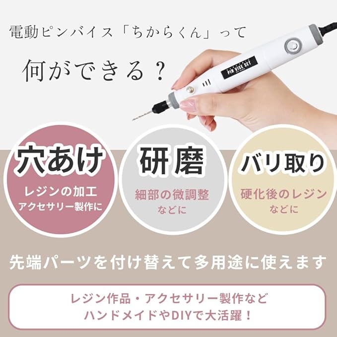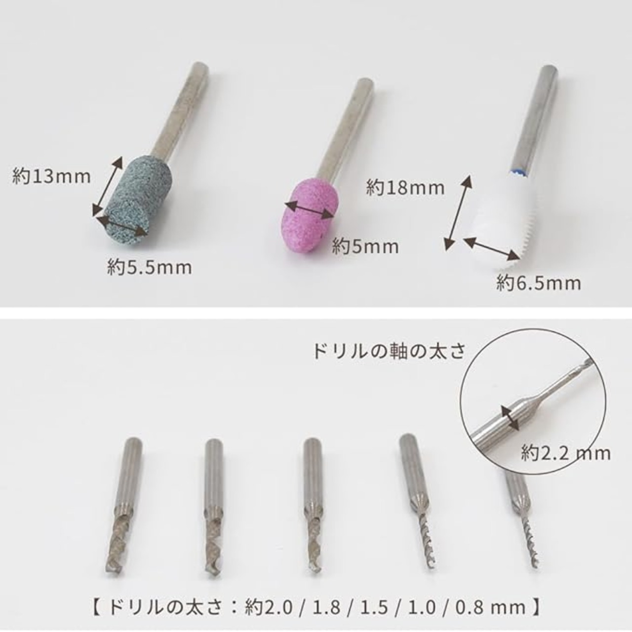 ■ご注意:・こちらはレジン作品用のドリルとなります。ネイル用としてはパワーが強すぎるのでご利用できません。 ・ケースに付いているフックの折れは、ご使用に差し支えのない為、不良の対象外となります。 ・本体の黒キャップの形状がロットによって若干変わる場合がありますが、使用上、問題ありません。