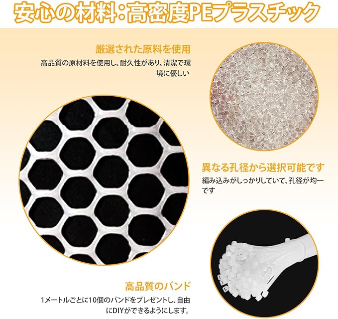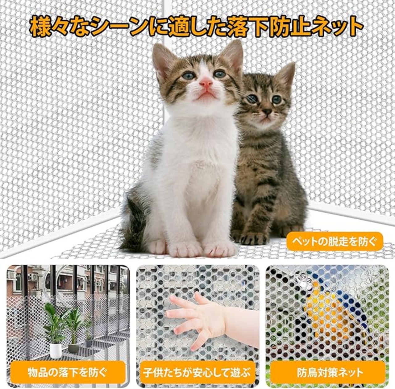 Misoso プラスチックネット 落下防止 転落防止網 脱走防止ネット 防獣ネット 安全網 防鳥 防獣 ペット柵 多目的ネット転落防止網 家禽網 diy 使用簡単な安全ネット 結束バンド付き (8mm穴 4m) | KAZESHOP