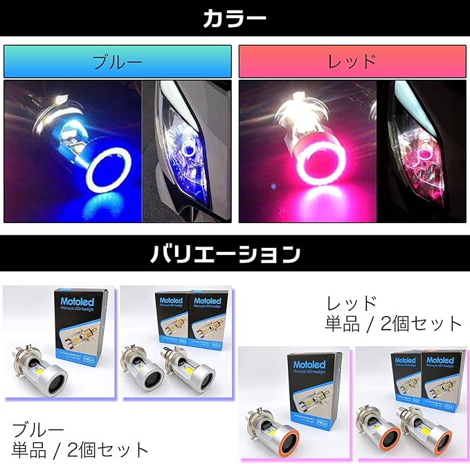 高輝度COB LEDチップを搭載した高速冷却ファン内蔵のH4 バイク用ヘッドライト(イカリング/エンジェルリング)です。